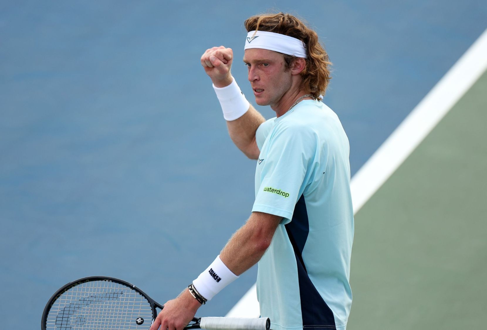 Россиянин Андрей Рублёв в пятисетовом матче второго круга против француза Артура Риндеркнеша отыгрался с 0:2 и вышел в следующий круг US Open. Матч продолжался более 4 часов и завершился со счетом 4:6, 5:7, 6:1, 6:2, 6:2.